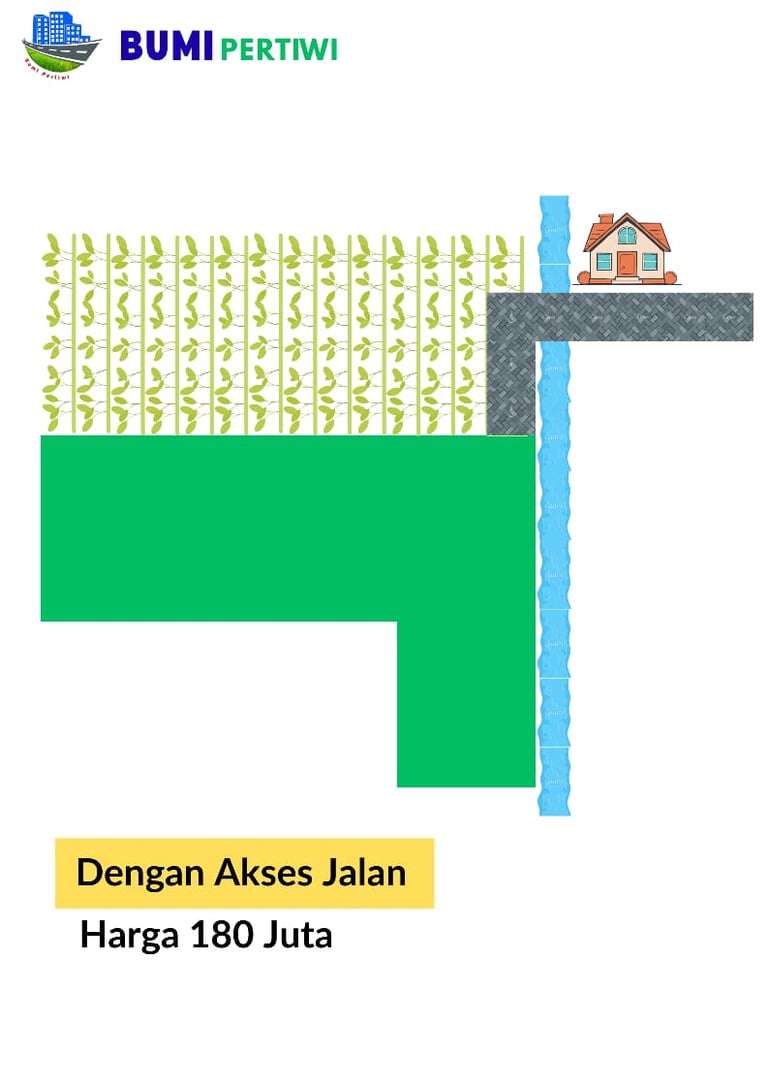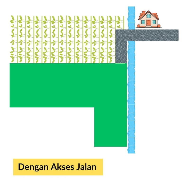 Penjualan dengan Akses Jalan: Kita buatkan akses jalan menuju lokasi, kita buatkan buk (Jembatan Kecil) supaya aliran air disaluran pas musim penghujan tidak terganggu, harga Rp. 180 Jt